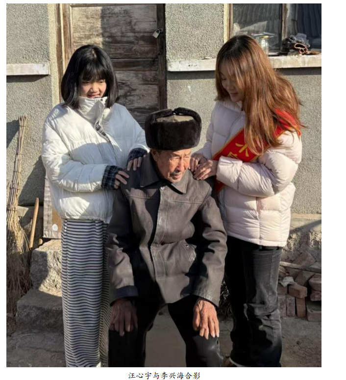 2026 年 1 月 20 日,汪心宇牵头组织 7 名保定籍同学,自发开展了“老兵服务周”专 项活动,对涞源县白石山镇西庄铺村 103 岁抗美援朝老战士李兴海进行为期一周的一对一 关爱服务,用青春、温情守护英雄晚年。