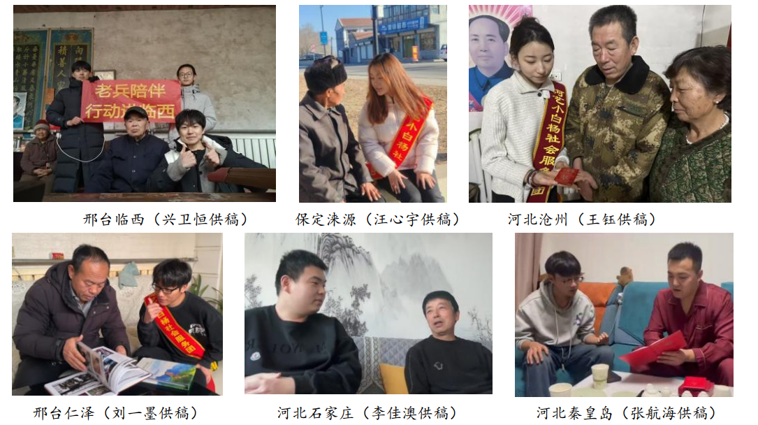 河艺小白杨社团“老兵故事”寒假调研行动将持续至 2026 年 2 月 24 日,形成家校社 联动的良好局面。截至目前,已有三百余名校志愿者与家属参与其中,在保定易县张丽结 合自身实际开展了“老兵陪伴行动走进太行”、冉庄刘子夜与王钰联手开展“老兵关爱进 冉庄”、邢台刘子墨“老兵您好到仁泽”等形式多样的调研与关爱活动。